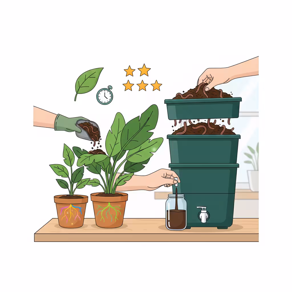 Ensuite, vous utilisez votre lombricompost pour vos plantes d’intérieur ou d’extérieur, et pour toutes vos plantations (potagers, fleurs, arbres et arbustes, fruitiers…).